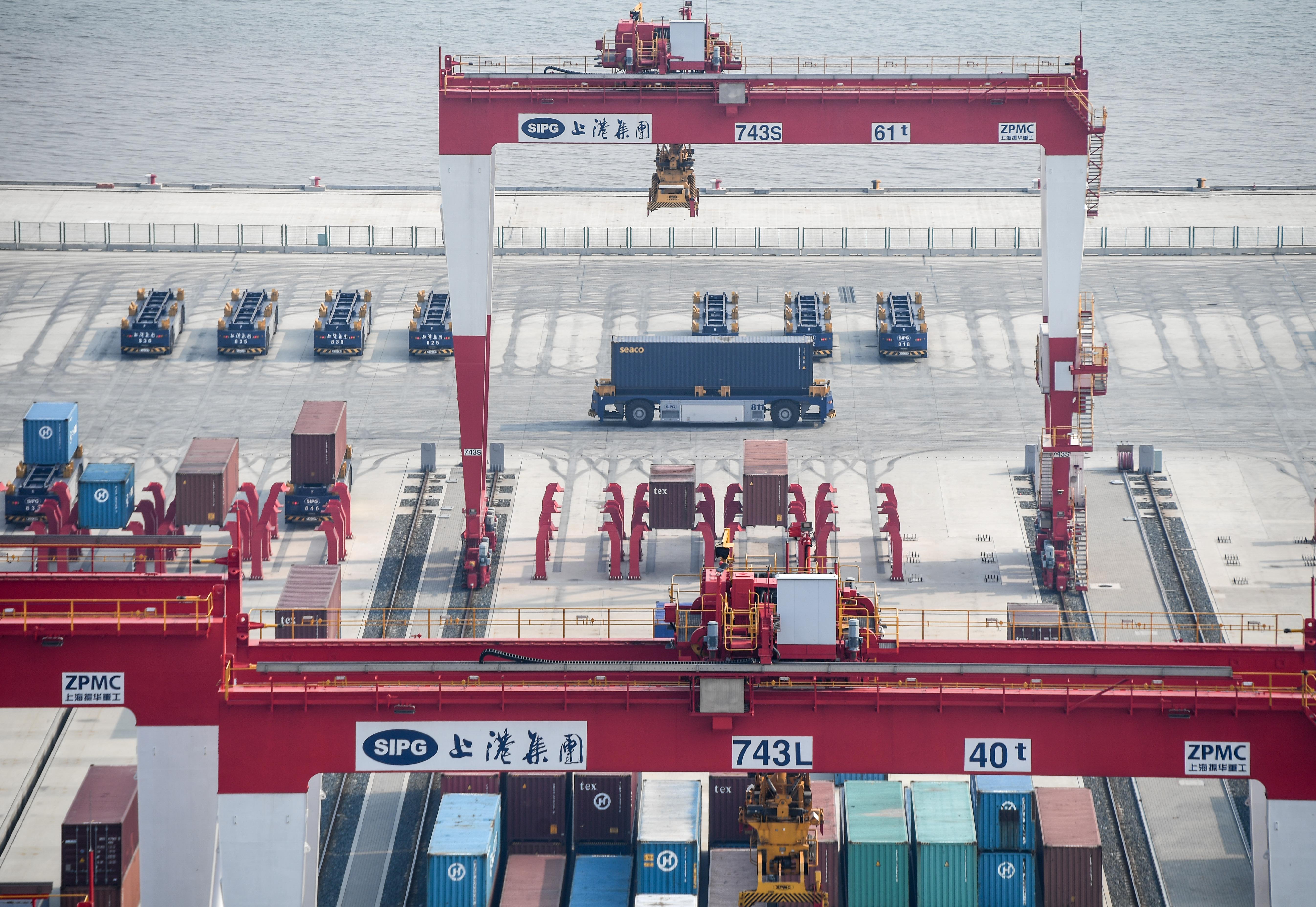 正在建設中的全球最大集裝箱全自動化碼頭——上海洋山深水港四期工程目前已進入最后的設備安裝和調試階段,計劃年底開港試運營。