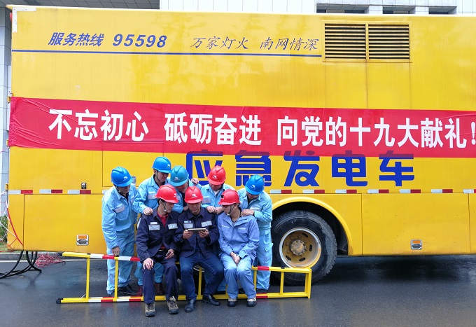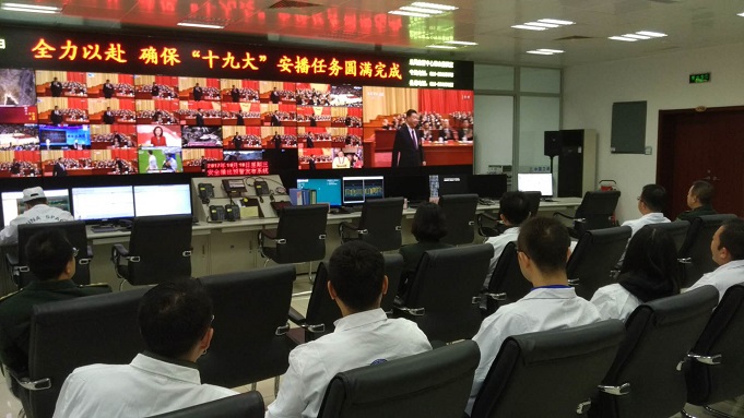 10月18日上午,南方電網貴州公司保電員工在工作待命期間通過手機收看黨的十九大開幕會盛況