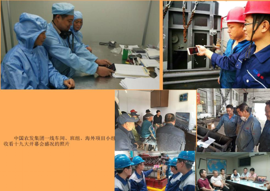 10 月 18 日,集團領導班子、總部各部門負責人(支部書記)在集團多媒體會議室集中收看十九大開幕會,認真聆聽了習近平代表第十八屆中央委員會向大會作了題為《決勝全面建成小康社會,奪取新時代中國特色社會主義偉大勝利》的報告。集團所屬各級企業和境外機構按照集團黨委統一部署利用電視、手機,廣播等形式收看收聽了十九大開幕會盛況。