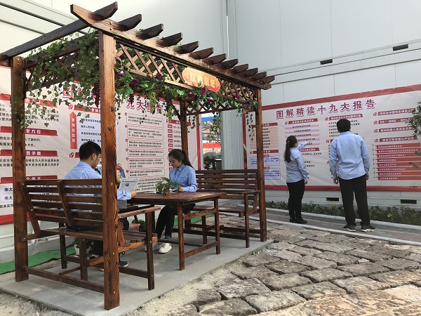 10月24日,中建二局(ju)所屬北京(jing)分(fen)公(gong)司(si)第(di)十一(yi)項(xiang)目(mu)黨支部(bu)編制的(de)(de)獻禮(li)“十九(jiu)大(da)”黨課微(wei)(wei)教材向支部(bu)黨員群眾發布(bu),微(wei)(wei)教材將十九(jiu)大(da)報告中的(de)(de)重要名詞和(he)新提法(fa)編輯整(zheng)理,還將中組(zu)部(bu)“共(gong)產黨員”和(he)中建二局(ju)黨建云平臺等多個黨建學習微(wei)(wei)信公(gong)眾號的(de)(de)二維碼收錄其中,方便黨員隨時隨地學習。在中建二局(ju)一(yi)公(gong)司(si)北宸府項(xiang)目(mu)辦公(gong)區和(he)施工(gong)現場的(de)(de)“紅色氧吧(ba)”、行(xing)人(ren)(ren)安全通道(dao)、施工(gong)主道(dao)路兩側、宣(xuan)傳欄和(he)大(da)門(men)口隨處(chu)可見十九(jiu)大(da)精神專題多幅大(da)畫面展板,同時為了便于管理人(ren)(ren)員和(he)工(gong)人(ren)(ren)深入學習十九(jiu)大(da)精神,還制作了“二維碼掃一(yi)掃”十九(jiu)大(da)精神專題電子(zi)書等。