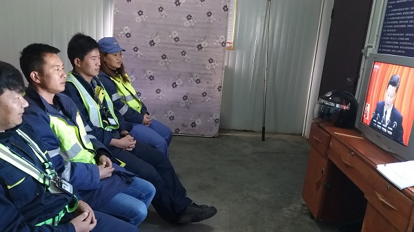 首都國門的航油鐵軍在庫站觀看黨的十九大開幕直播