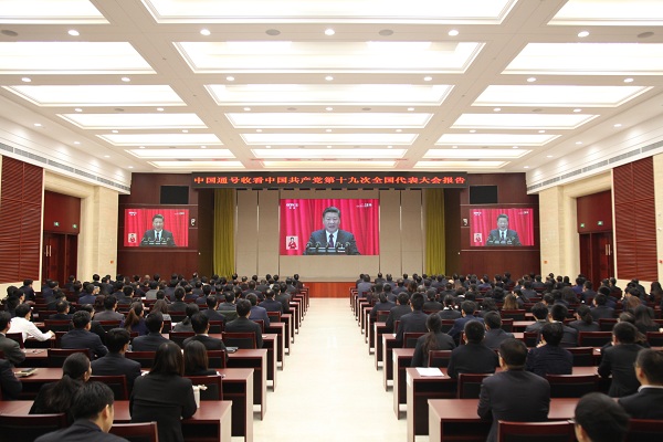 黨(dang)(dang)的(de)(de)(de)(de)十九(jiu)大(da)(da)(da)召開前夕(xi),按(an)照國(guo)(guo)資(zi)(zi)委黨(dang)(dang)委的(de)(de)(de)(de)統(tong)一部(bu)(bu)署(shu)(shu)(shu),中(zhong)國(guo)(guo)通(tong)(tong)號黨(dang)(dang)委專(zhuan)門發(fa)布《關于(yu)組織(zhi)(zhi)收(shou)(shou)聽收(shou)(shou)看(kan)(kan)黨(dang)(dang)的(de)(de)(de)(de)十九(jiu)大(da)(da)(da)盛況(kuang)的(de)(de)(de)(de)通(tong)(tong)知》,要求(qiu)各級(ji)黨(dang)(dang)組織(zhi)(zhi)和全體黨(dang)(dang)員(yuan)要進一步牢固樹立“四個意識”,把收(shou)(shou)聽收(shou)(shou)看(kan)(kan)黨(dang)(dang)的(de)(de)(de)(de)十九(jiu)大(da)(da)(da)盛況(kuang)作為一項(xiang)重要政治任務進行部(bu)(bu)署(shu)(shu)(shu)和落實,切實組織(zhi)(zhi)好(hao)企(qi)(qi)業(ye)(ye)本部(bu)(bu)、實驗室、重大(da)(da)(da)項(xiang)目、重點(dian)工程(cheng)以(yi)(yi)及(ji)生(sheng)產車(che)間的(de)(de)(de)(de)觀看(kan)(kan)活動(dong),展示中(zhong)國(guo)(guo)通(tong)(tong)號黨(dang)(dang)員(yuan)干部(bu)(bu)職工擼起袖子(zi)加(jia)油干,喜迎黨(dang)(dang)的(de)(de)(de)(de)十九(jiu)大(da)(da)(da)的(de)(de)(de)(de)飽滿精(jing)(jing)神(shen)狀態(tai)。黨(dang)(dang)的(de)(de)(de)(de)十九(jiu)大(da)(da)(da)閉幕后第(di)一時間,中(zhong)國(guo)(guo)通(tong)(tong)號黨(dang)(dang)委迅速掀起學(xue)習(xi)(xi)熱潮,先后兩(liang)次召開黨(dang)(dang)委中(zhong)心(xin)組擴(kuo)大(da)(da)(da)學(xue)習(xi)(xi)會(hui)議,專(zhuan)題學(xue)習(xi)(xi)黨(dang)(dang)的(de)(de)(de)(de)十九(jiu)大(da)(da)(da)報(bao)(bao)告(gao)、關于(yu)十八屆中(zhong)央委員(yuan)會(hui)報(bao)(bao)告(gao)的(de)(de)(de)(de)決議、關于(yu)中(zhong)央紀律(lv)檢查委員(yuan)會(hui)工作報(bao)(bao)告(gao)的(de)(de)(de)(de)決議、關于(yu)《中(zhong)國(guo)(guo)共產黨(dang)(dang)章(zhang)程(cheng)(修正案)》的(de)(de)(de)(de)決議等文件精(jing)(jing)神(shen)。專(zhuan)題學(xue)習(xi)(xi)黨(dang)(dang)章(zhang)新內容、新觀點(dian)、新思想(xiang),對全系統(tong)學(xue)習(xi)(xi)宣(xuan)傳十九(jiu)大(da)(da)(da)精(jing)(jing)神(shen)進行再安排(pai)、再部(bu)(bu)署(shu)(shu)(shu)、再動(dong)員(yuan),要求(qiu)各級(ji)黨(dang)(dang)組織(zhi)(zhi)統(tong)籌安排(pai),精(jing)(jing)心(xin)謀(mou)劃,做到按(an)照國(guo)(guo)資(zi)(zi)委黨(dang)(dang)委提出的(de)(de)(de)(de)組織(zhi)(zhi)領導、學(xue)習(xi)(xi)培訓、宣(xuan)傳引導、督查指導和推(tui)動(dong)工作“五(wu)個到位(wei)”。要求(qiu)全體黨(dang)(dang)員(yuan)干部(bu)(bu)學(xue)以(yi)(yi)致用,以(yi)(yi)學(xue)促(cu)做,以(yi)(yi)學(xue)促(cu)變,推(tui)動(dong)企(qi)(qi)業(ye)(ye)做強做優做大(da)(da)(da),加(jia)快向(xiang)具有全球(qiu)競(jing)爭力(li)的(de)(de)(de)(de)世界(jie)一流(liu)企(qi)(qi)業(ye)(ye)邁進。