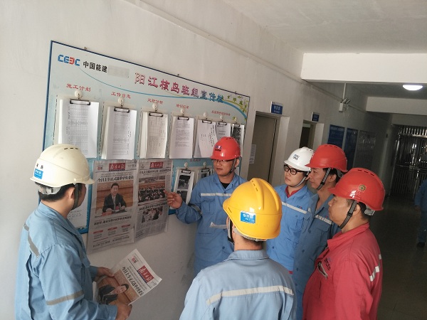 中國能建廣東火電陽江核島項目部黨員學習十九大精神,樹意識、明目標、重實干、守規矩。