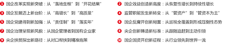 這一年,國企發展(zhan)取得靚(jing)麗成績,規模效益(yi)實現雙(shuang)快增(zeng)長;國資監管加快職能轉變(bian),以國資改(gai)(gai)革引領國企改(gai)(gai)革;混改(gai)(gai)取得突破(po)性進展(zhan),重組(zu)聚力優質(zhi)資本(ben),重大創新(xin)科技成果涌現,瘦身健(jian)體、提質(zhi)增(zeng)效順利(li)推(tui)進,地方國企改(gai)(gai)革熱潮(chao)涌動亮點紛呈,“走出去”開創合(he)作共(gong)贏新(xin)篇(pian)章。