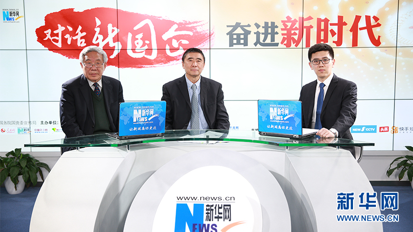 全國政協委員、中國保利集團有限公司黨委書記、董事長徐念沙和國家行政學院教授、知名專家周紹朋做客新華網與網友在線交流。(圖片來源:新華網)