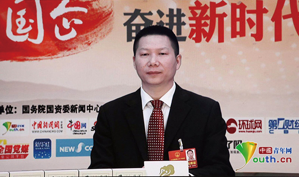全國(guo)人大代(dai)表(biao)、神龍汽(qi)車有限(xian)公司武漢工廠制造一(yi)部沖焊分廠鈑(ban)金(jin)工楊祉剛。中國(guo)青年網實習記(ji)者 趙丹(dan)楓 攝