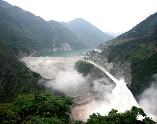 圖1:大渡河瀑布溝水電站泄洪現場