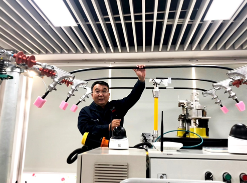 “時代楷模”張黎明演示他正在研發的帶電作業機器人。(暢帥帥 攝)