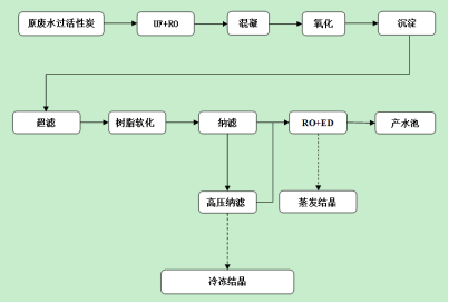 焦化(hua)(hua)廢水零排(pai)放資源化(hua)(hua)利用項目(mu)對生(sheng)化(hua)(hua)出(chu)水進一步(bu)處理,廢水經氧(yang)化(hua)(hua)及(ji)軟化(hua)(hua)預處理+膜(mo)分(fen)離及(ji)濃縮+分(fen)質(zhi)結(jie)(jie)晶(jing)(jing)(jing)工(gong)藝,濃水經過(guo)高(gao)壓膜(mo)和冷(leng)凍(dong)結(jie)(jie)晶(jing)(jing)(jing)工(gong)藝,得到合格工(gong)業(ye)(ye)(ye)級硫酸鈉(na)(na)結(jie)(jie)晶(jing)(jing)(jing)鹽(yan)(yan)產(chan)品;分(fen)鹽(yan)(yan)產(chan)水再(zai)經過(guo)提鹽(yan)(yan)膜(mo)處理系統和電滲析和MVR(機械蒸汽再(zai)壓縮蒸發(fa)結(jie)(jie)晶(jing)(jing)(jing))后得到工(gong)業(ye)(ye)(ye)級氯化(hua)(hua)鈉(na)(na)結(jie)(jie)晶(jing)(jing)(jing)鹽(yan)(yan)。分(fen)質(zhi)結(jie)(jie)晶(jing)(jing)(jing)得到的硫酸鈉(na)(na)和氯化(hua)(hua)鈉(na)(na)工(gong)業(ye)(ye)(ye)鹽(yan)(yan)品質(zhi)較好,可(ke)以滿足工(gong)業(ye)(ye)(ye)鹽(yan)(yan)標準,產(chan)水可(ke)以回用于生(sheng)產(chan)工(gong)藝,水回用率進一步(bu)提高(gao),實現近零排(pai)放,實現水資源高(gao)效循環利用。