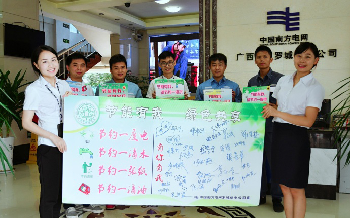 南方電網廣西羅城供電公司組織青年志愿者、黨員自愿者服務隊,開展以“節能有我,綠色共享”為主題的倡導低碳健康生活的宣傳活動。