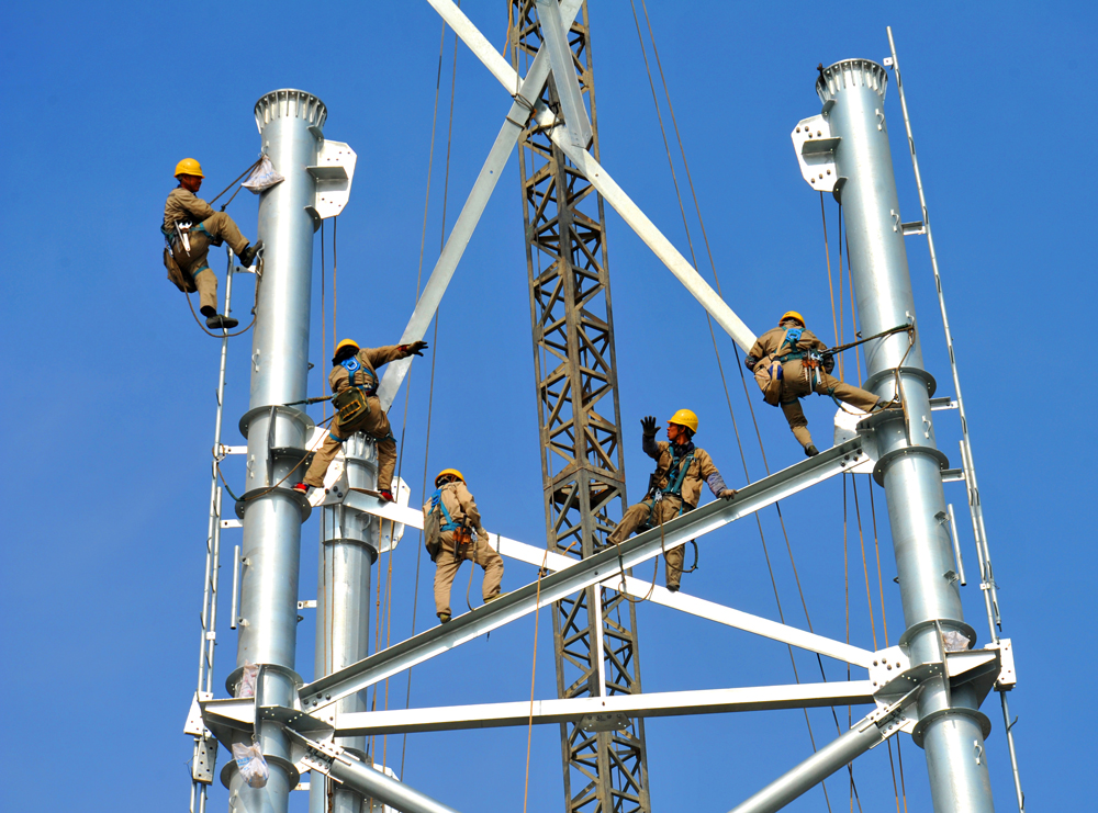 作品說明:2017年(nian)12月26日,廣(guang)東中山(shan)500千伏文(wen)山(shan)站輸電線路(lu)工(gong)程(cheng)進(jin)入倒排工(gong)期(qi),500千伏獅桂線路(lu)進(jin)行(xing)解口(kou)接(jie)入文(wen)山(shan)站。圖(tu)為廣(guang)東省(sheng)輸變(bian)電工(gong)程(cheng)公司線路(lu)二分公司施(shi)工(gong)人員在距離(li)地面60多米高(gao)處組(zu)裝(zhuang)B104鐵塔。