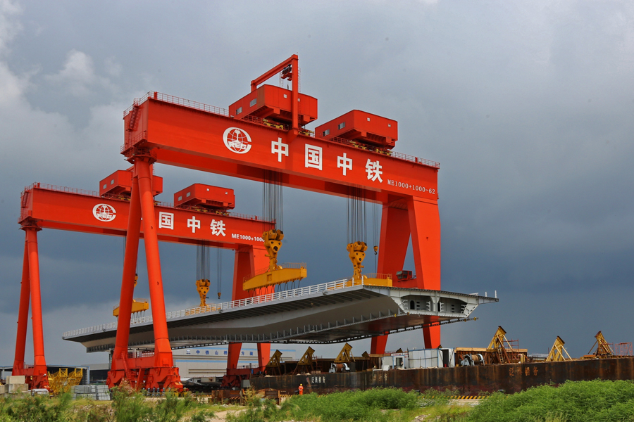 作品說明:圖為超級(ji)工(gong)程港珠(zhu)澳大(da)橋(qiao)鋼箱(xiang)梁(liang)建(jian)設工(gong)程,國內首次實現(xian)了鋼箱(xiang)梁(liang)大(da)節段(duan)拼裝,包括(kuo)大(da)節段(duan)吊裝裝船(chuan)、大(da)節段(duan)海(hai)上拖(tuo)運、大(da)節段(duan)海(hai)上架設(大(da)節段(duan)重(zhong)3500多噸(dun),長152米)。