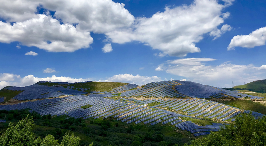 作品說明:據國家(jia)能源(yuan)局統計數據顯示,截至今年6月底(di),我國光伏(fu)發電裝機容量達到15451萬千瓦。圖為:地(di)處(chu)河北省(sheng)張家(jia)口境內的(de)光伏(fu)電場。