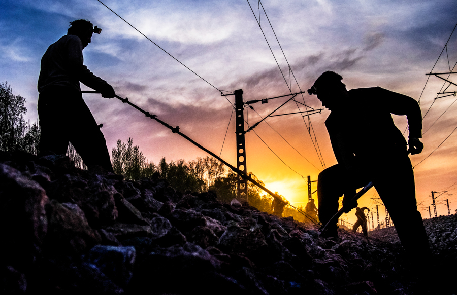 作品說明:鐵(tie)路(lu)部(bu)門為了減(jian)少影響列(lie)車(che)的運(yun)行(xing),大部(bu)分作業都(dou)是在夜間進行(xing)。這張照片是2018年4月(yue)20日早晨7點(dian)拍(pai)攝,真實記(ji)錄鐵(tie)路(lu)工人(ren)夜間施工感人(ren)的勞(lao)動場面(mian)。