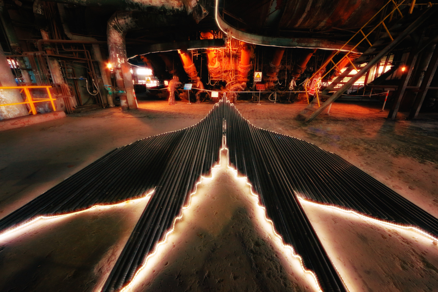 作品說明:2013年11月,在首鋼二號高爐拍攝,由廢鋼材搭建的(de)雕塑《飛(fei)翔的(de)首鋼》。