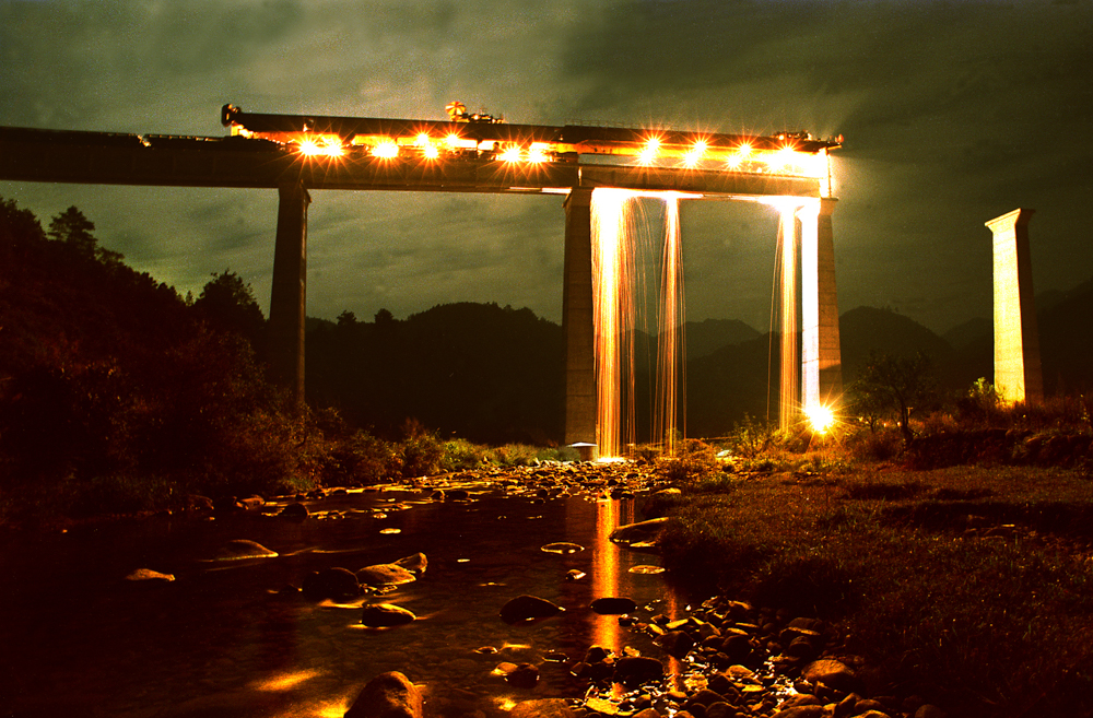 作品說明:1997年(nian)10月(yue)15日,中(zhong)鐵(tie)二局在江西橫(heng)峰至福建南平鐵(tie)路福建段夜間架梁施工。橫(heng)南鐵(tie)路1997年(nian)12月(yue)31日全線(xian)鋪通(tong)。