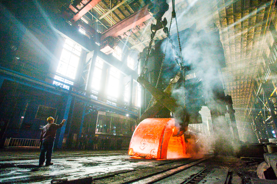 作品說明:作品反映的是中國(guo)第一重型機械(xie)股份公司15000噸水壓機在(zai)生(sheng)產過程中的一個瞬間,光影、工人、大型吊(diao)鉗(qian)與水壓機相應生(sheng)輝!