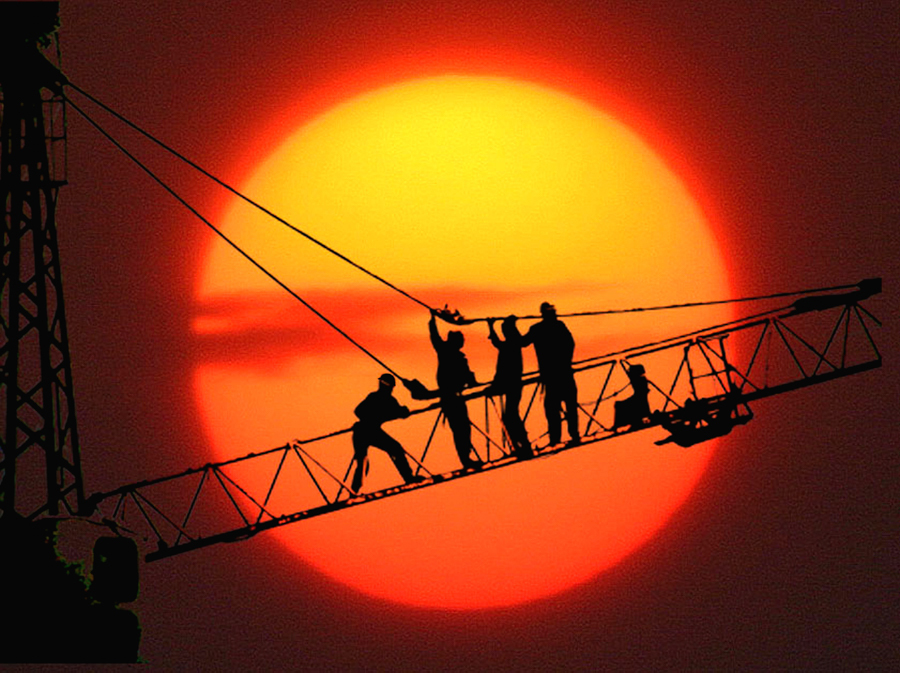 作品說明:忙碌的身影,火熱的勞動場面。此幅(fu)作(zuo)品拍攝于2010年5月,地(di)點(dian)是白(bai)音華金山發電有限公司火力發電機組建設工地(di)。