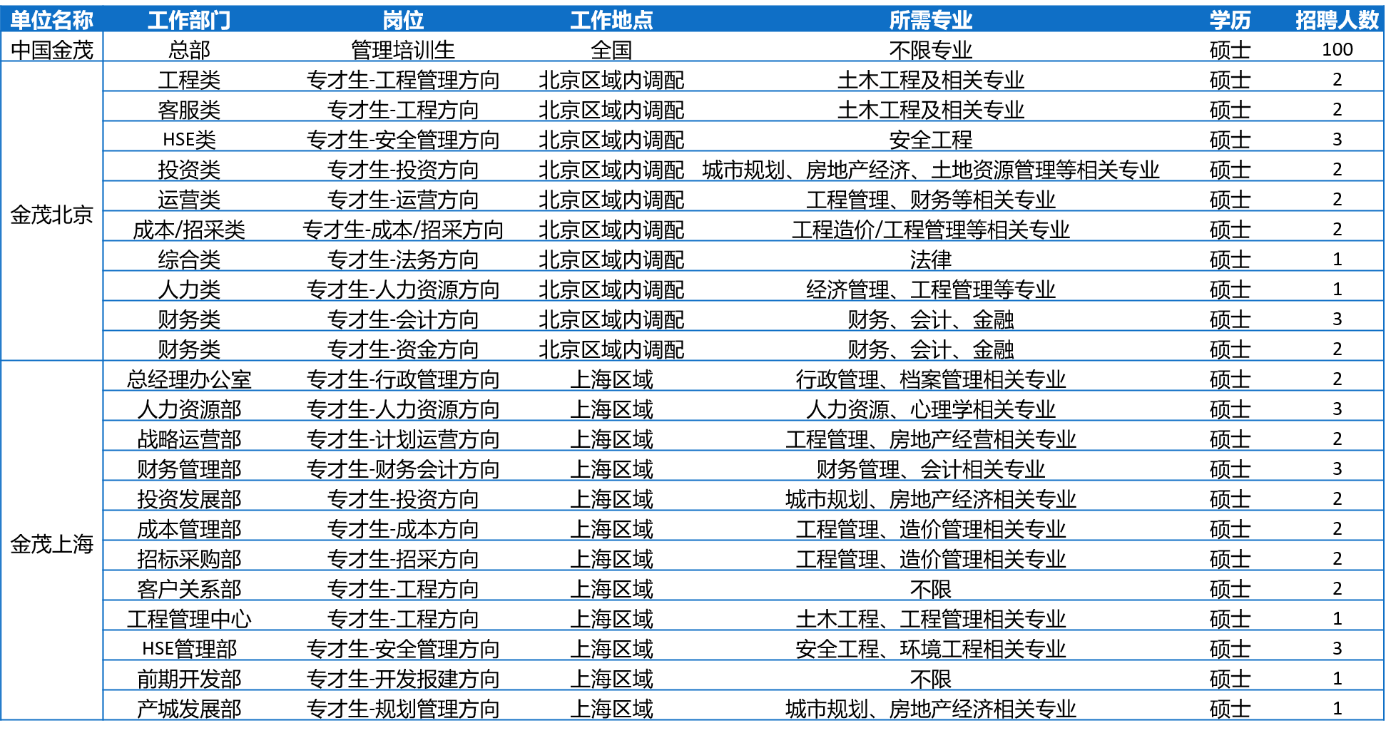 05 中國金茂招聘崗位