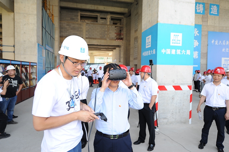 在(zai)中(zhong)建(jian)六(liu)局(ju)中(zhong)建(jian)中(zhong)心項目活(huo)動現場(chang),與會人員體(ti)驗VR,感受建(jian)筑新科(ke)技