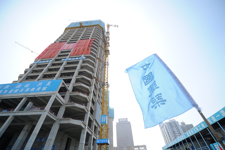 中(zhong)建六局中(zhong)建中(zhong)心(xin)寫字樓封頂儀式(shi)現場(chang)