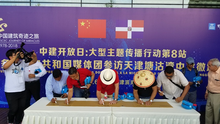 活動現場,記者們紛紛拿著“中(zhong)建藍寶”,與員工合影,并在留言簿(bu)上寫下了對中(zhong)國建筑的贊美、對多(duo)中(zhong)兩國人民友誼(yi)長存(cun)的祝(zhu)福。