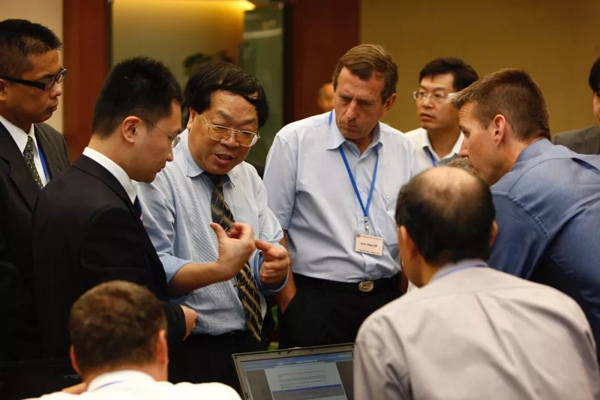 2011年,包起帆(左三)在美國與各國專家討論國際標準。