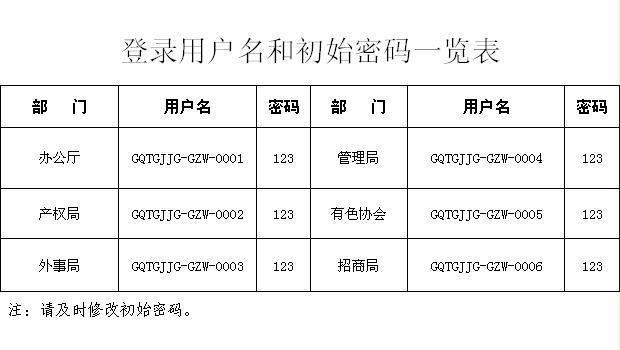 附件:登(deng)錄用戶名和初始密碼一(yi)覽表
