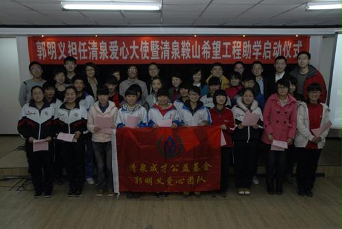 3月(yue)8日下午,“國(guo)資(zi)委(wei)直(zhi)屬(shu)機關郭(guo)明義愛(ai)心團隊”的青(qing)年(nian)志(zhi)愿者(zhe)踏上了赴遼寧鞍(an)(an)山的助學公益(yi)之旅。在陪同(tong)清(qing)泉(quan)基金工(gong)作(zuo)人(ren)員實(shi)地走(zou)訪受資(zi)助學生家(jia)庭、參觀鞍(an)(an)鋼集團雷鋒紀念館后,“國(guo)資(zi)委(wei)直(zhi)屬(shu)機關郭(guo)明義愛(ai)心團隊”青(qing)年(nian)志(zhi)愿者(zhe)與(yu)受資(zi)助學生以(yi)及(ji)所(suo)在學校輔導員、部分學生家(jia)長共(gong)同(tong)見證了郭(guo)明義擔任清(qing)泉(quan)愛(ai)心大(da)使暨清(qing)泉(quan)鞍(an)(an)山希望工(gong)程(cheng)助學啟動儀式,并與(yu)“當代雷鋒”郭(guo)明義同(tong)志(zhi)進行了面對(dui)面的互動交流。