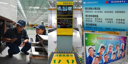 在(zai)(zai)車間里,圖文并(bing)茂的“四化”展板隨處可見,內容貫(guan)穿(chuan)工前準(zhun)備、工作過(guo)程(cheng)和收工的全(quan)過(guo)程(cheng)。在(zai)(zai)這樣的標準(zhun)要(yao)求下,一(yi)組組整齊排列的轉向(xiang)架成(cheng)品(pin),仿(fang)佛已不再是(shi)冰冷的機器部件,而是(shi)化身為一(yi)件件訴說(shuo)著極致之美的藝(yi)術品(pin)。
