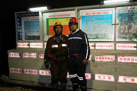 “他們(men)(men)也是(shi)(shi)我(wo)們(men)(men)最可(ke)愛的(de)(de)人(ren)”神東集團(tuan)團(tuan)委副書記張玉芳的(de)(de)一(yi)(yi)句話,說出(chu)了(le)我(wo)第(di)一(yi)(yi)次下(xia)礦(kuang)井(jing)見(jian)到(dao)顧(gu)(gu)班(ban)(ban)長(chang)時的(de)(de)心聲。顧(gu)(gu)班(ban)(ban)長(chang)是(shi)(shi)當天的(de)(de)帶班(ban)(ban)班(ban)(ban)長(chang),17歲就來(lai)到(dao)上灣礦(kuang)已(yi)經整整工作了(le)27個(ge)(ge)年頭,從(cong)(cong)最早的(de)(de)爆破開(kai)采、肩挑手搬到(dao)現在的(de)(de)機械化開(kai)采,可(ke)以說他就是(shi)(shi)上灣乃(nai)至整個(ge)(ge)神東的(de)(de)一(yi)(yi)部發展(zhan)史。經過(guo)幾個(ge)(ge)小時的(de)(de)井(jing)下(xia)勞作他的(de)(de)臉已(yi)沾(zhan)滿了(le)煤灰油(you)污,讓人(ren)無(wu)法看(kan)清他的(de)(de)長(chang)相(xiang),但從(cong)(cong)輪廓和眼神中(zhong)能感覺到(dao)這是(shi)(shi)一(yi)(yi)個(ge)(ge)樸實堅毅(yi)的(de)(de)漢子。看(kan)著他那(nei)沾(zhan)滿煤灰油(you)污的(de)(de)臉,心中(zhong)有一(yi)(yi)種(zhong)莫名的(de)(de)感動,情不(bu)自禁(jin)地想跟(gen)顧(gu)(gu)師傅和個(ge)(ge)影,于是(shi)(shi)我(wo)們(men)(men)調(diao)研團(tuan)的(de)(de)成員一(yi)(yi)哄而上紛紛與顧(gu)(gu)班(ban)(ban)長(chang)合影,用他自己(ji)的(de)(de)話說找到(dao)了(le)做明星(xing)的(de)(de)感覺。真正的(de)(de)明星(xing)的(de)(de)確應(ying)該(gai)是(shi)(shi)他們(men)(men),社會(hui)應(ying)該(gai)給予(yu)他們(men)(men)明星(xing)般的(de)(de)認可(ke),他們(men)(men)的(de)(de)身(shen)上折射出(chu)的(de)(de)勤勞、樸實、善良,正是(shi)(shi)我(wo)們(men)(men)中(zhong)國精神的(de)(de)濃(nong)縮。