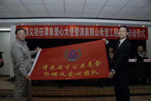 3月(yue)8日下午,“國資(zi)委直屬機(ji)關(guan)郭(guo)(guo)明義愛(ai)心團(tuan)隊(dui)”的(de)青年(nian)志愿者踏上了赴遼寧鞍山的(de)助學(xue)(xue)公益之(zhi)旅。在陪(pei)同(tong)(tong)清(qing)(qing)泉(quan)基金(jin)工作人(ren)員(yuan)實地走訪受(shou)資(zi)助學(xue)(xue)生家庭(ting)、參觀鞍鋼集(ji)團(tuan)雷鋒紀念館后,“國資(zi)委直屬機(ji)關(guan)郭(guo)(guo)明義愛(ai)心團(tuan)隊(dui)”青年(nian)志愿者與受(shou)資(zi)助學(xue)(xue)生以及所(suo)在學(xue)(xue)校輔導(dao)員(yuan)、部(bu)分學(xue)(xue)生家長共同(tong)(tong)見(jian)證了郭(guo)(guo)明義擔任清(qing)(qing)泉(quan)愛(ai)心大使暨清(qing)(qing)泉(quan)鞍山希望工程助學(xue)(xue)啟動(dong)儀(yi)式,并(bing)與“當代雷鋒”郭(guo)(guo)明義同(tong)(tong)志進行了面對面的(de)互(hu)動(dong)交流。