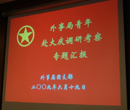 2009年6月19日,外事局團支部開展主題團日活動,陳浩、張冬梅、韓筠3位參加委機關團委組織的“根在基層”調研活動的同志向全局同志匯報了此次赴大慶考察的所見、所思與所想。