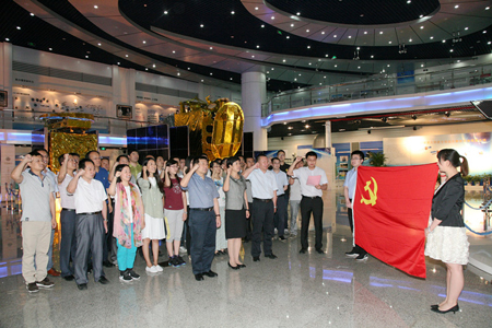 7月3日下午(wu),辦公廳青年同(tong)志赴航(hang)天科技五院參(can)加主(zhu)題黨日活(huo)動(dong)。同(tong)志們觀看航(hang)天工業宣(xuan)傳片,參(can)觀航(hang)天衛星(xing)組裝(zhuang)展廳,了(le)解(jie)中國(guo)航(hang)天事業發展歷程。面對(dui)鮮艷(yan)的黨旗(qi),同(tong)志們重溫(wen)了(le)入黨誓詞。