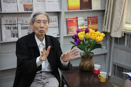 房(fang)昭文(wen)老(lao)(lao)同(tong)(tong)志(zhi)(zhi)出身山東肥城書(shu)香世家,家與國(guo)同(tong)(tong)命運(yun),房(fang)老(lao)(lao)孩童時代遭(zao)遇日本(ben)帝(di)國(guo)主(zhu)義侵華,祖宅被日本(ben)人侵占后借住親友家中(zhong)(zhong)(zhong),十(shi)五歲就進入抗日中(zhong)(zhong)(zhong)學,接受(shou)半軍事化教育,隨(sui)后正式加(jia)入八路軍,在冀魯豫邊區逐漸(jian)成長為(wei)一名成熟的(de)宣傳工作(zuo)(zuo)戰(zhan)(zhan)士,以文(wen)字的(de)力(li)量(liang)奮勇抗戰(zhan)(zhan)。房(fang)老(lao)(lao)今年(nian)(nian)已是八十(shi)六歲高(gao)齡(ling),但仍精(jing)神矍(jue)鑠,思維敏捷,講述過去條理(li)清晰,生動形象,引人共鳴(ming)。訪談中(zhong)(zhong)(zhong),房(fang)老(lao)(lao)對自(zi)(zi)己的(de)抗戰(zhan)(zhan)經歷(li)和(he)抗戰(zhan)(zhan)感受(shou)娓娓道來(lai),并寄語青年(nian)(nian)同(tong)(tong)志(zhi)(zhi):希望青年(nian)(nian)同(tong)(tong)志(zhi)(zhi)堅定理(li)想信念,這(zhe)是青年(nian)(nian)同(tong)(tong)志(zhi)(zhi)特別(bie)是青年(nian)(nian)黨員的(de)思想靈魂,也(ye)是無論身處(chu)任何(he)崗(gang)位,勵志(zhi)(zhi)奉獻(xian)的(de)動力(li)源(yuan)泉;希望青年(nian)(nian)同(tong)(tong)志(zhi)(zhi)能(neng)夠堅持學習(xi)(xi),加(jia)強學習(xi)(xi),從(cong)書(shu)籍中(zhong)(zhong)(zhong)學習(xi)(xi),從(cong)實(shi)踐(jian)中(zhong)(zhong)(zhong)學習(xi)(xi),認真(zhen)學習(xi)(xi)研(yan)究黨政理(li)論方(fang)針和(he)業務(wu)知識,不斷(duan)提(ti)高(gao)自(zi)(zi)身思想境(jing)界和(he)工作(zuo)(zuo)本(ben)領;希望青年(nian)(nian)同(tong)(tong)志(zhi)(zhi)腳踏實(shi)地,真(zhen)抓實(shi)干(gan),這(zhe)是做好(hao)各項工作(zuo)(zuo)的(de)基本(ben)要求(qiu)和(he)出發點,也(ye)是黨員干(gan)部貫徹(che)黨中(zhong)(zhong)(zhong)央整頓工作(zuo)(zuo)作(zuo)(zuo)風、提(ti)高(gao)自(zi)(zi)身工作(zuo)(zuo)能(neng)力(li)的(de)實(shi)踐(jian)基礎。訪談最后,房(fang)老(lao)(lao)還(huan)對冶金(jin)離(li)退休干(gan)部局在職干(gan)部的(de)工作(zuo)(zuo)與付出表(biao)達(da)了真(zhen)誠的(de)謝意(yi)。