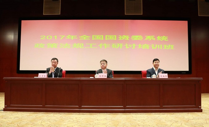 12月19-20日,2017年全國(guo)(guo)(guo)國(guo)(guo)(guo)資(zi)(zi)委(wei)系統政(zheng)策法(fa)規(gui)(gui)工作研(yan)討(tao)培訓班(ban)在北京舉辦。培訓的主題(ti)是深入學習黨(dang)的十九大精神,貫徹全面依法(fa)治國(guo)(guo)(guo)戰略部署,落實國(guo)(guo)(guo)資(zi)(zi)國(guo)(guo)(guo)企改革發展(zhan)重要任務,總結2017年國(guo)(guo)(guo)資(zi)(zi)委(wei)系統政(zheng)策法(fa)規(gui)(gui)工作,分析(xi)當(dang)前(qian)面臨的新形勢新要求,研(yan)究2018年重點工作。郝(hao)鵬(peng)書記對(dui)(dui)這次研(yan)討(tao)培訓專門(men)作出(chu)重要批示,對(dui)(dui)推(tui)動完善(shan)國(guo)(guo)(guo)有資(zi)(zi)產管(guan)理體制,加快打造國(guo)(guo)(guo)資(zi)(zi)監管(guan)法(fa)治機構(gou)和法(fa)治國(guo)(guo)(guo)企提(ti)出(chu)明確要求。